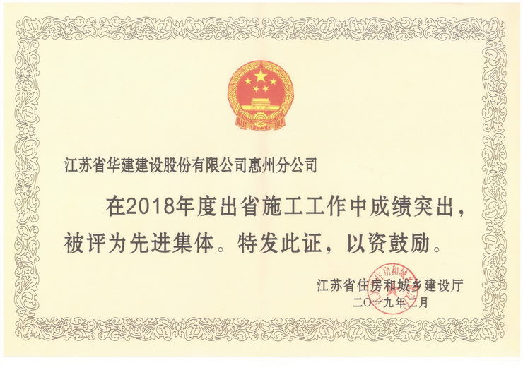 會議表彰了一批江蘇出省施工先進集體及先進個人。其中,惠州公司被江蘇省住房和城鄉(xiāng)建設廳表彰為2018年度江蘇出省施工先進集體,總經(jīng)理周群利、技術質(zhì)量處主任陳申高被江蘇省住房和城鄉(xiāng)建設廳表彰為2018年度江蘇出省施工先進個人;黃秀剛、邵群斌、王興東分別被江蘇省人民政府駐深圳(廣州)辦事處表彰為2018年度江蘇進粵、桂、閩、瓊施工質(zhì)量安全、經(jīng)營財務和新聞報道先進個人。