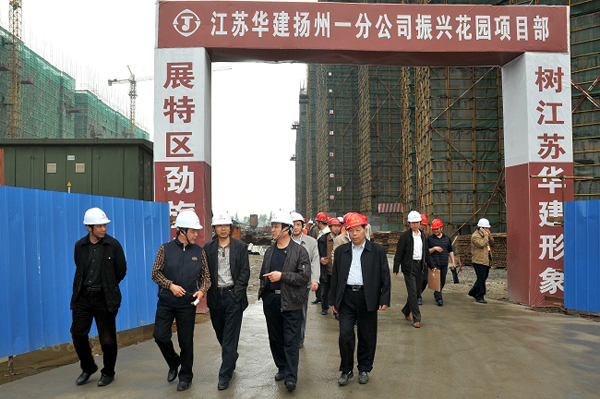 5月5日,陸金龍董事長一行赴公司在揚(yáng)首個土建項目振興花園檢查指導(dǎo)安全生產(chǎn)工作。在聽取了項目部相關(guān)同志對安全生產(chǎn)情況的具體介紹后,陸總指出,安全生產(chǎn)大于天,各級管理人員要在思想上高度重視,千萬不能有松懈麻痹思想,要對安全工作加大投入,在組織上層層落實,積極開展各類安全培訓(xùn)教育,切實把安全工作做到位。隨后,陸總一行人到施工現(xiàn)場參觀檢查,對各項工作表示滿意。公司副總經(jīng)理吳士茂、揚(yáng)州一分公司李幼杰、王志明等領(lǐng)導(dǎo)陪同參加。