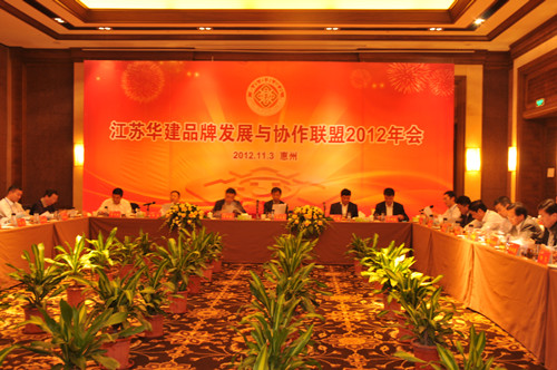 113下午,華建聯盟2012年會暨聯盟投資管理有限公司股東會議在惠州召開。會議聽取和審議了聯盟秘書長戴壯民所作的華建聯盟秘書處工作報告;聽取和審議了聯盟投資公司總經理李長棟所作的經營情況報告;聽取和審議了資格審查委員會主任吳士茂所作的關于新增聯盟成員、觀察員情況的說明。在本次會議上,新增了揚州市市政工程有限公司、江蘇長江鋼業重工有限公司、廣東高建建筑工程有限公司、海南何昌龍團隊等4個新成員,新增了揚州意匠軒園林古建筑營造有限公司、儀征市建設工程有限公司、西安馬駿團隊、北京蔣紅軍團隊、惠州周才富團隊等5個聯盟觀察員。新增成員與聯盟主席陸金龍簽署了共同協議,陸主席為新增成員頒發了證書和加盟牌。在隨后的討論發言中,新增成員一一表示了堅決跟隨江蘇華建互生共長的決心,新增觀察員紛紛表達了及早加入華建聯盟的強烈愿望。