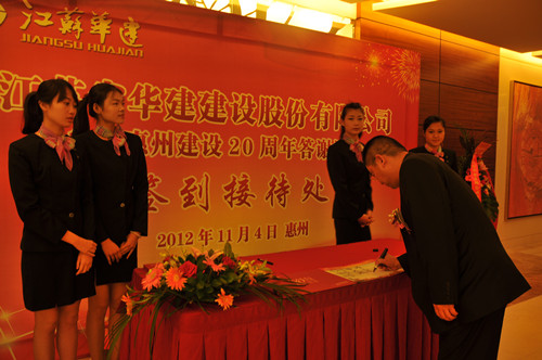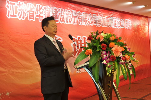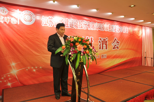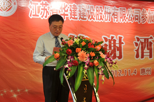 11月4日,公司在惠州隆重舉辦參加惠州建設20周年答謝酒會,副董事長、總經(jīng)理宗有農(nóng)主持并作開場致辭?;葜菔杏嘘P政府部門、部分合作方企業(yè)的負責人,華建聯(lián)盟成員單位負責人,公司董事、監(jiān)事和高管等130余人出席酒會?;葜莨究偨?jīng)理華恒榮介紹了公司參加惠州建設二十年的有關情況。惠州市工商聯(lián)主席、恒宇實業(yè)發(fā)展公司董事長楊滿芳代表合作方發(fā)言,惠州市住房和城鄉(xiāng)規(guī)劃建設局副局長陳訓政代表政府主管部門致辭,分別對江蘇華建進惠施工二十周年表示祝賀。公司董事長陸金龍代表總部對惠州市有關政府部門、相關合作方和社會各界人士給予公司的關心和支持表示誠摯的感謝,并表達了進一步加大支持力度、加強戰(zhàn)略合作、加快科學發(fā)展的意愿。