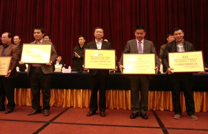 11月14日,中國建筑業(yè)協(xié)會建筑安全分會2013年年會在合肥召開,會議通報表彰了一批2013年度全國AAA級安全文明標準化誠信工地,公司承建的倚能 •美林灣項目和淮安翔宇大廈項目名列其中,公司副總經(jīng)理、海南公司總經(jīng)理王宏出席會議并領獎。