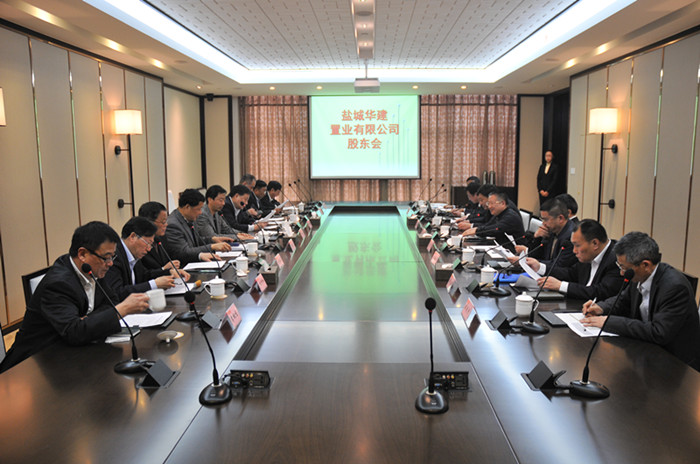 4月7日下午,鹽城華建置業有限公司股東會2014年會在華建企業展示中心召開,華建地產董事長程杰主持會議,會議聽取并審議通過了繆文明代表鹽城華建經營層所作的工作報告。