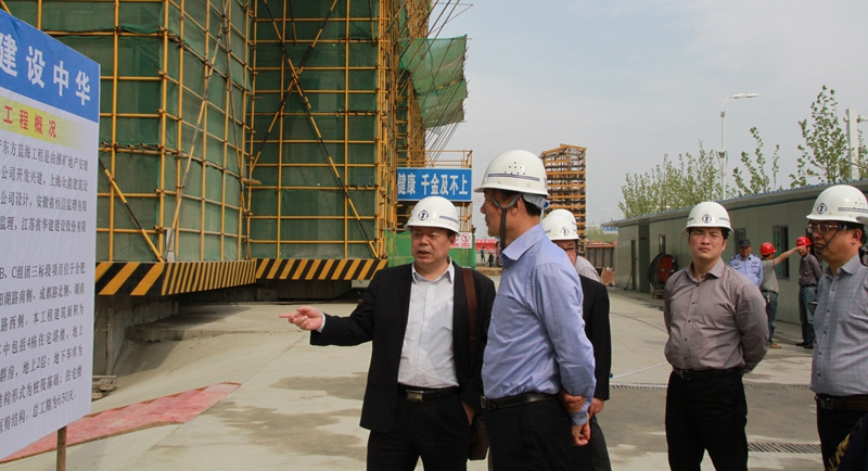 聞道才副市長赴安徽分公司視察東方藍海項目 時間:2014-04-11 3617 4月10日下午,揚州市副市長聞道才一行赴安徽分公司視察了合肥東方藍海B、C組團三標段項目。公司副總經理陸俊、副總經理、惠州公司總經理華恒榮陪同參加。 在項目現場華恒榮副總經理向來訪領導簡要介紹了江蘇華建在安徽市場的發展戰略及東方藍海B、C組團三標段項目的施工情況。聞市長對施工現場、施工組織非常滿意,并再三強調要抓好安全工作,爭創優質工程,為揚州建筑業在安徽市場的發展做出積極貢獻。