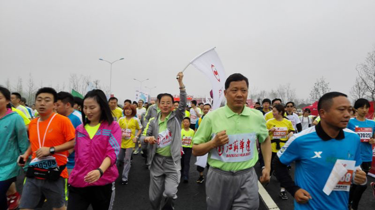 4月19日上午8點,由中國體育協(xié)會、江蘇省體育局、揚州市政府共同主辦的“中國聲谷杯”2015揚州鑒真國際半程馬拉松賽暨全國半程馬拉松錦標賽正式鳴槍開賽。江蘇華建愛跑團與來自全球43個國家和地區(qū)的3.5萬選手共同沖出起跑線。