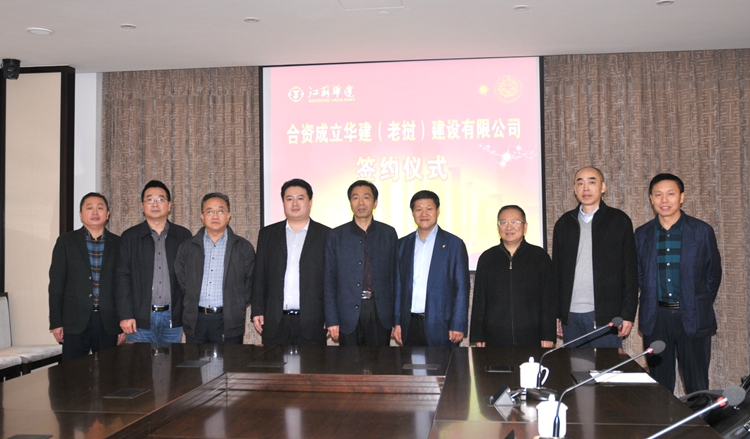 1123日上午,公司董事長陸金龍與老撾吉達蓬集團董事長姚賓就成立華建(老撾)建設有限公司簽訂合資協議書。吉達蓬集團副總經理吳興華、公司領導程杰、陸俊以及相關合作方負責人參加活動。