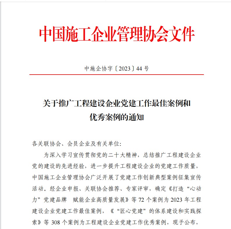 6月2日,中國施工管理企業(yè)協(xié)會發(fā)布2023年度全國工程建設企業(yè)黨建工作創(chuàng)新典型,江蘇華建申...