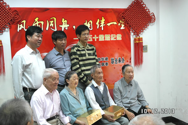 10月12日,中國傳統節日“重陽節”前夕,上海分公司與承建的洛克外灘源項目所在地的虎丘居委會聯合舉辦“五十金婚紀念”活動,大力弘揚中華民族尊老愛老的優良傳統美德,也是公司與地方政府開展聯建共建活動的重要成果。上海分公司總經理助理、工會副主席陳德權還代表公司向居委會轄區內60對金婚夫婦贈送了由江西景德鎮特制的象征“幸福”、“長壽”的茶杯。