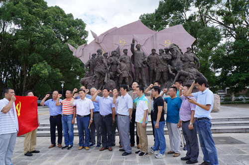 上海分公司黨總支組織開展“紅色之旅”教育 時間:2016-08-16 4256 8月12日,上海分公司黨總支組織部分黨員干部和入黨積極分子共18人,赴愛國主義教育基地福建古田開展“促兩學一做,走紅色之旅”教育活動,在“主席園”向毛主席像敬獻花籃,在“豐碑軍魂”雕像前面對黨旗重溫入黨誓詞,還仔細參觀古田會議地址和紀念館,回顧緬懷了老一輩無產(chǎn)階級革命家的不朽事跡。大家牢記“古田會議永放光芒”精神,紛紛表示:“不忘初心,繼續(xù)前行”。