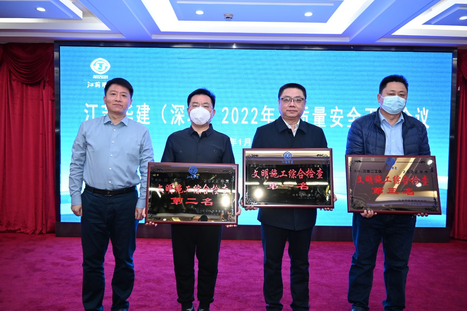 會議表彰了2022年下半年先進項目經理部、安全生產、文明施工檢查綜合評分前三名和“安全生產月”活動前三名,公司總經理吳碧橋為獲獎工程處頒發了榮譽獎牌。