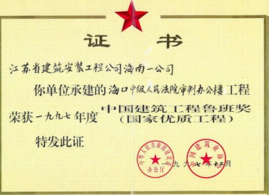 海口市中級人民法院審判辦公樓位于海口市金宇路8號,1995年4月竣工,1996年6月被評為海南省優(yōu)質工程,并榮獲海南省優(yōu)秀建筑二等獎,1997年12月榮獲1997年度建筑工程魯班獎。