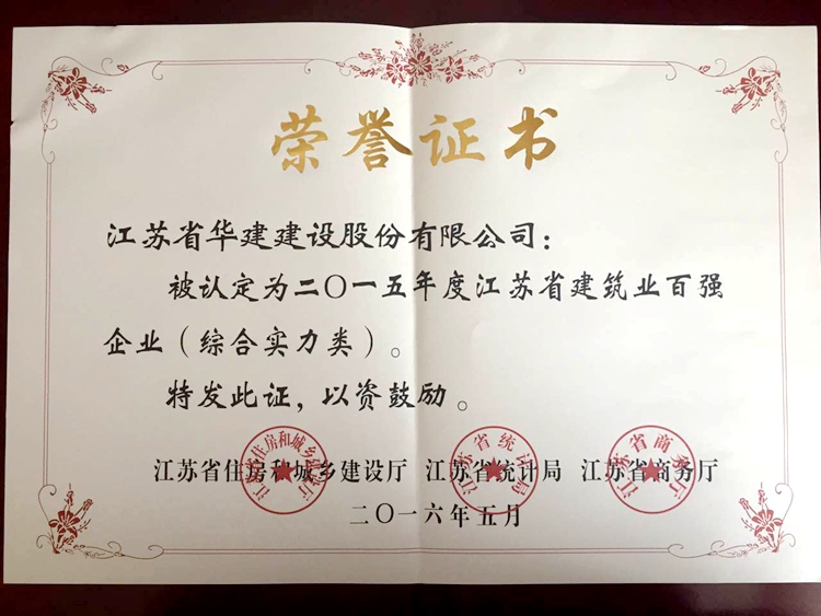 “百強企業”評比由江蘇省住房和城鄉建設廳、江蘇省商務廳、江蘇省統計局聯合組織,主要從企業營業額等經濟類指標、質量安全、技術創新指標等方面進行綜合評定。近年來,江蘇華建緊緊圍繞創新發展、轉型發展、跨越發展的戰略目標,以集約化、專業化、多元化為方向,以拓市場、擴規模、促轉型為手段,加快做大、做強、做優、做久,綜合實力和品牌知名度得到不斷提升。