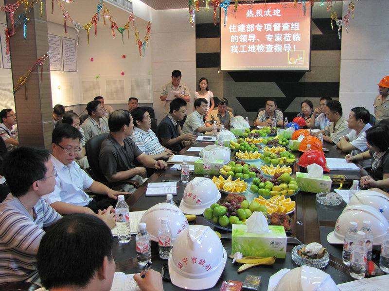 住建部建筑施工安全專項督查組檢查指導廣西麗原•天際城項目 時間:2010-10-14 5387 9月18日上午,國家住房城鄉建設部建筑施工安全專項督查組蒞臨我公司廣西麗原·天際城工地檢查指導工作,勘察了施工現場的實體安全狀況,查閱了施工質量安全技術資料,檢查了我公司的資質、安全許可、三類人員與特種作業人員持證的情況。項目部的安全防護與文明施工工作受到了督查組的一致好評,住建部工程質量安全監管司王樹平副司長在知道我們爭創“魯班獎”的情況后,提出了許多寶貴的意見,并預祝我們的質量目標得以圓滿實現。 另訊,此前麗原·天際城工程項目被評為2010年上半年廣西自治區文明工地。