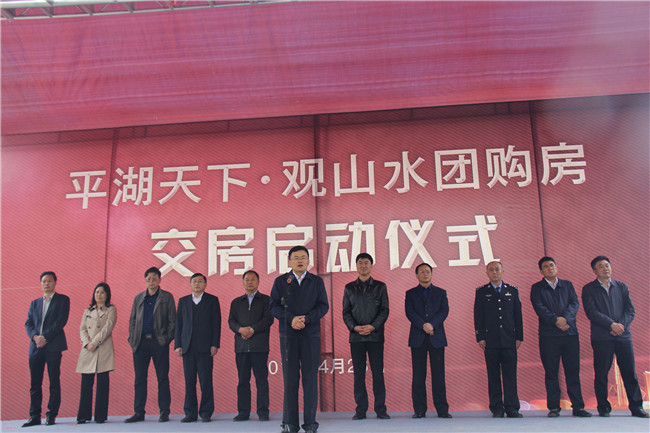 428日上午10時,由海南區域公司宜昌分公司總包承建的平湖天下·觀山水團購房交房啟動儀式在項目C區隆重舉行,夷陵區委書記王璽偉等區委區政府相關領導,宜昌分公司總經理唐生健出席儀式并參與團購房交鑰匙環節。