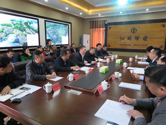 封頂儀式結束后,王董事長一行與岳池縣委書記鄭鵬程為首的縣四套班子領導在公司會議室舉行了座談會。鄭書記對華建管理層高度重視岳池項目建設表示感謝,并提出三點意見一是岳池城東新區建設具有先導性,希望雙方在現有基礎上進一步深化互利合作;二是項目建設要把握好節奏,更加注重標志性和引領性;三是雙方要切實規范項目運行,及時完善施工手續,確保項目順利推進。王董事長對岳池縣政府對岳池項目給予的關心支持表示感謝,他同時表示,此次來岳一是旨在加強和保持與岳池縣委政府的交流溝通,增進往來,深化雙方感情;二是實地了解項目建設情況,落實二期項目實施關工作,協調各方工作對接,強化資金保障支持,以順利推進項目建設。雙方還就馬家村對口扶貧工作進行了溝通交流,王董事長強調江蘇華建將按照岳池縣政府的統籌安排,積極履行社會責任,認真研究如何實現精準扶貧并開辟生財之道,持續幫扶馬家村脫貧致富