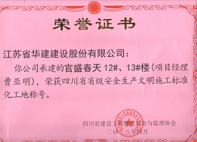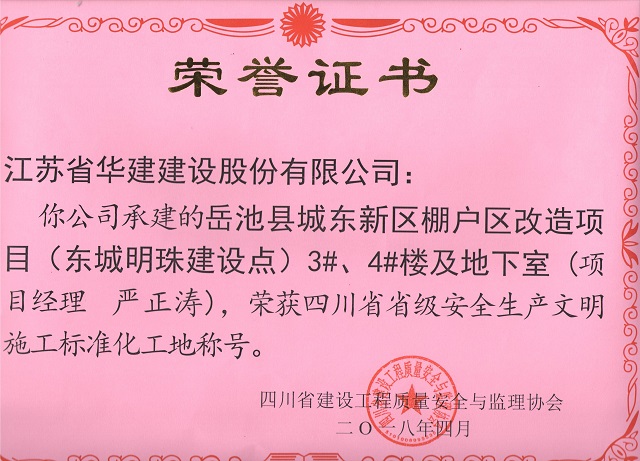 重慶分公司2項目獲評“四川省安全生產文明施工標準化工地” 時間:2018-04-20 3188 4月18日,重慶分公司項目創優再獲新成果,公司承建的岳池縣城東新區棚戶區改造項目(東城明珠建設點)3#、4#及地下室、官盛春天12#、13#樓被四川省建設工程質量安全與監理協會評為“四川省省級安全生產文明施工標準化工地”。至此,重慶分公司獲省級標化工地獎項已達3項。