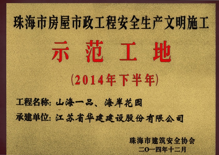 山海一品海岸花園榮獲2014年下半年珠海市房屋市政工程安全生產文明施工示范工地